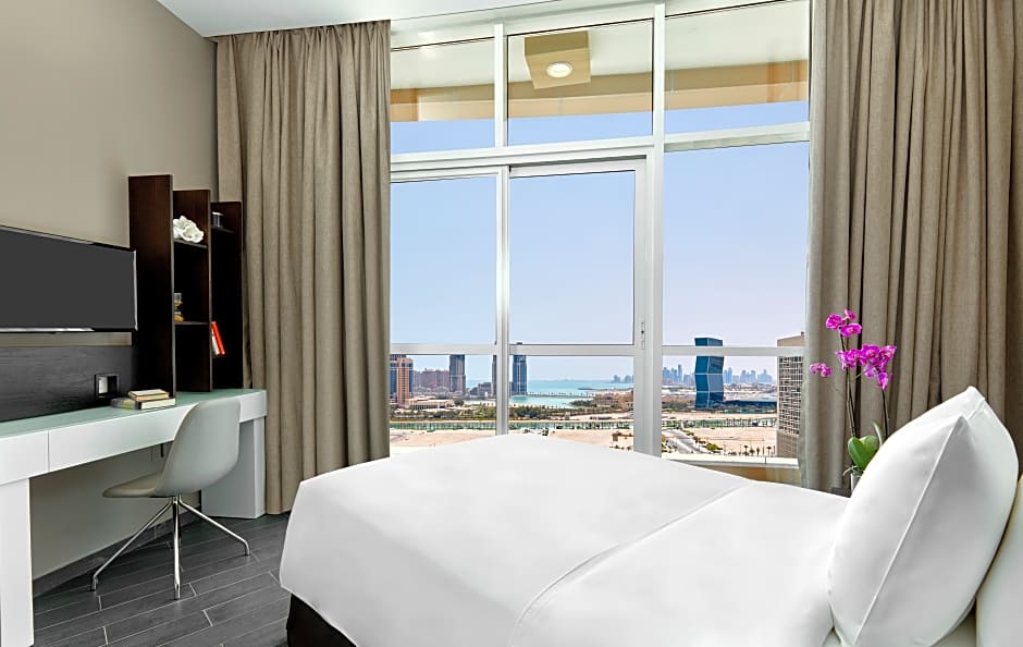 Indulge in the luxurious amenities and stunning views offered at Staybridge Suites - Doha Lusail. Take a refreshing dip in the outdoor swimming pool, which is heated and available all year round, allowing you to enjoy a swim regardless of the season. After your swim, unwind in the sauna and let your worries melt away. The hotel also features a fitness center, perfect for maintaining your fitness routine during your stay. With ocean and landmark views that will take your breath away, you'll truly feel like you're in paradise.